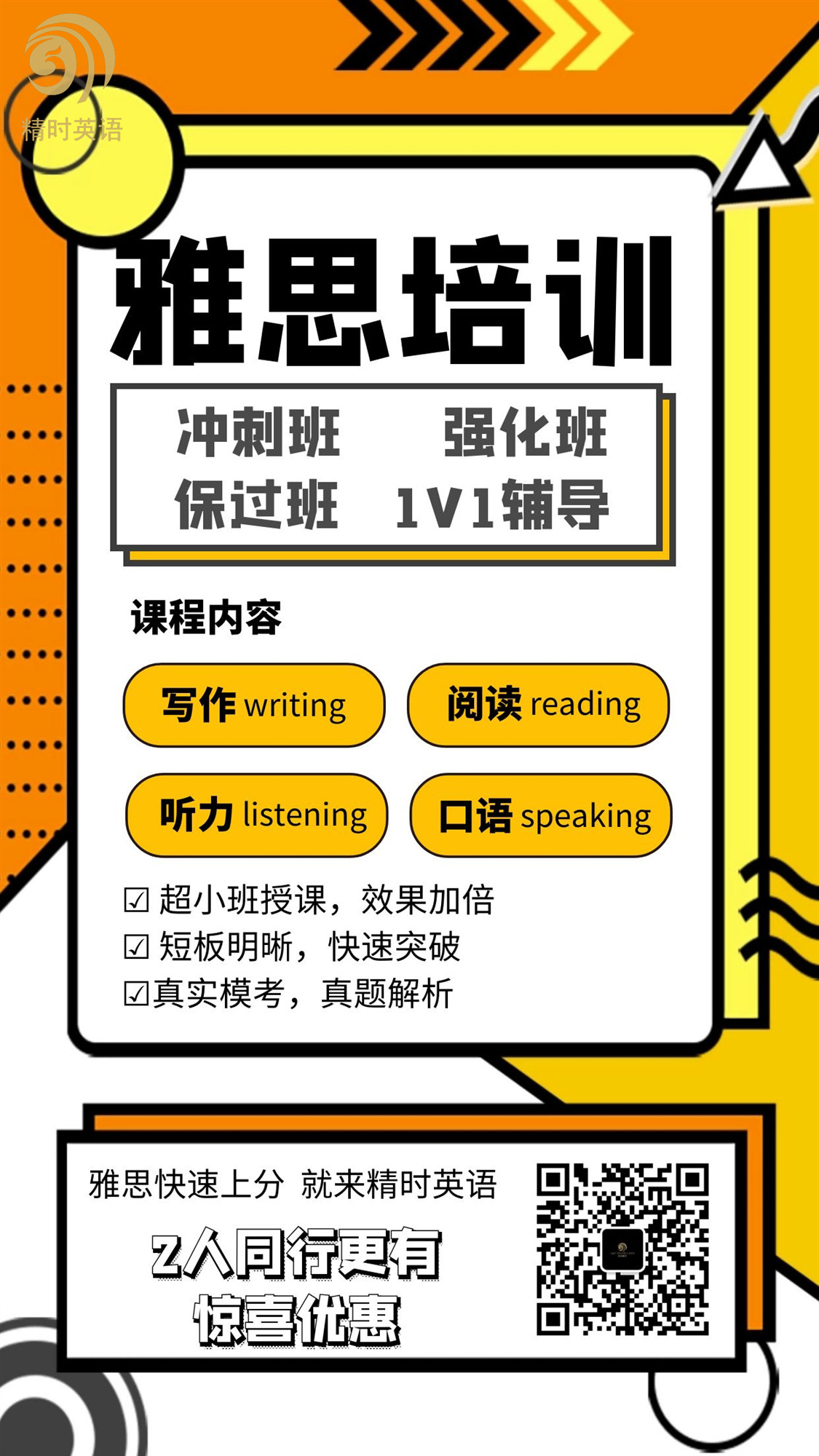 精时英语针对性和个性化的课程设计、科学合理的教学体系、实战式英语情景训练、超小班制教学、独特的考试、速记技巧、高品质的教学质量、极高的通过率等受到各年龄层次、职业、专业的学生广泛好评。