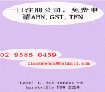 一日注册公司、免费申请ABN,GST,TFN