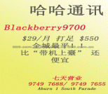 哈哈通讯 Aburn 1 South Parade 七天营业 9749 7688/ 9749 7655 $29/月 打足 $550 全城最平!! 比“带机上臺” 还便宜 Blackberry9700