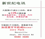 新世纪电讯 凡签第2个或以上合约,将享有10%月费优惠 交送免提耳机,手机套,汽车充电器,屏幕保护膜 可提前3个月续约,更换新手机 加送蓝牙耳机或Accessory Pack Hurstville: shop1, 153 Forest Rd ph:9580