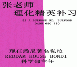 James Ruse 毕业,现读医科,211奥林匹克化学竞赛铜奖,在校时任奥化辅导教师,物理全校第二,可上门,近Burwood更好。0422535668 (英) 0414299668 (中 )