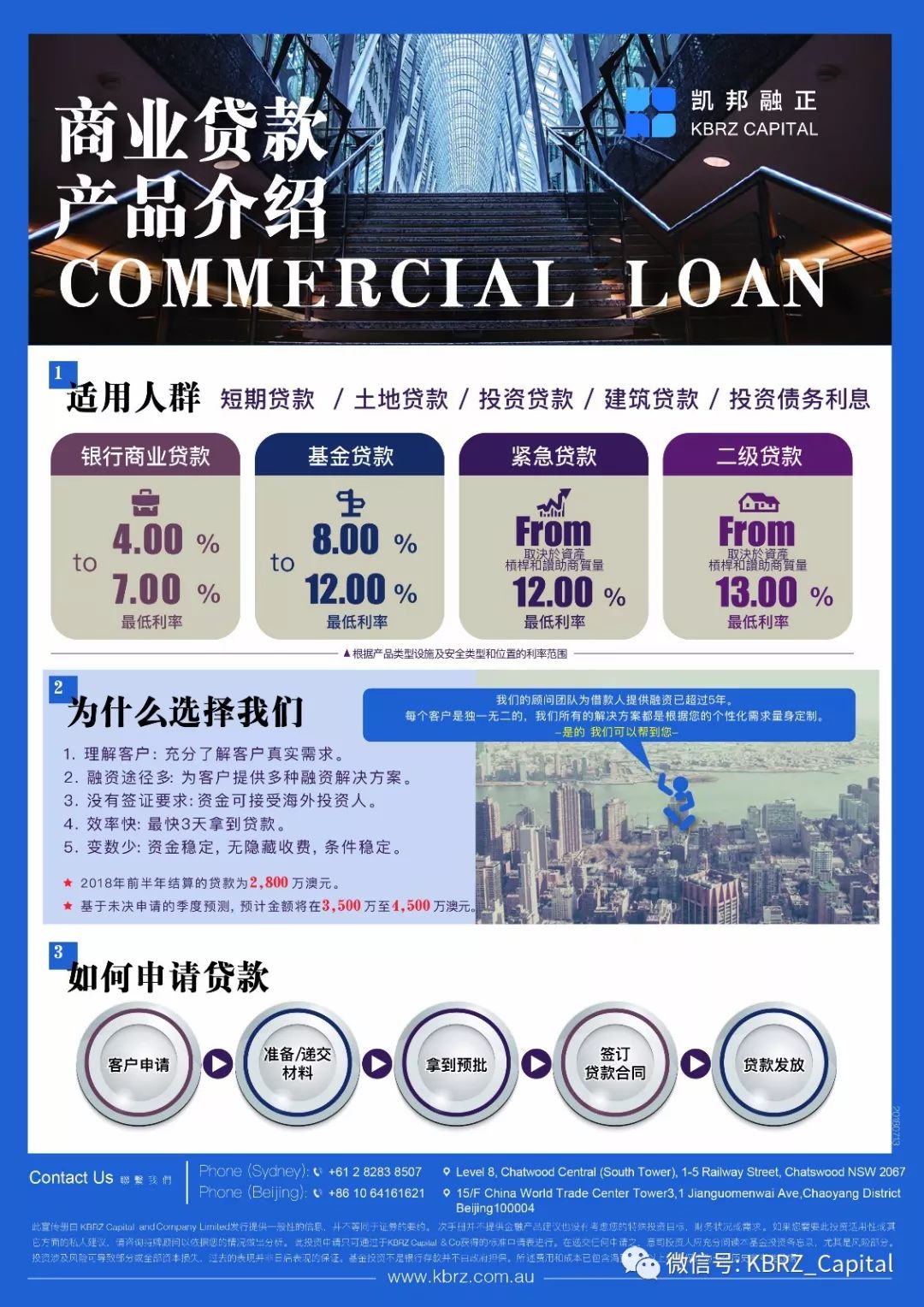 凯邦融正KBRZ Capital是凯邦融正资本集团KBRZ Capital Group旗下成员,专注于房产抵押贷款、汇兑、置业、地产股权投资等业务。凯邦融正KBRZ Capital在北京和悉尼都设有办公机构,以股权融资和商业贷款的形式给各种优质的商业以及地产开发项目提供多元化的融资方案。