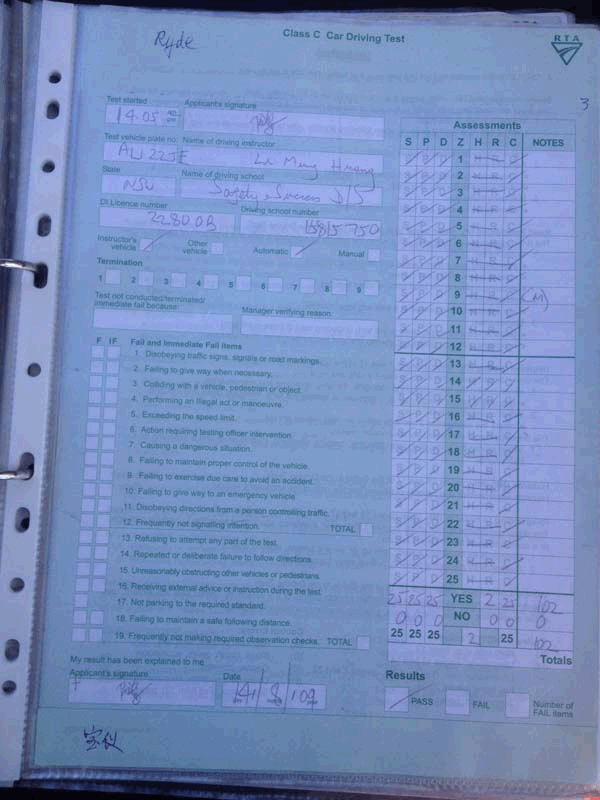 RMS 金牌教练,路考专家,经验丰富,技术精湛,首过率极高,讲解准确细致,各种泊车精准易学,所有驾驶要领完全符合RMS最新路考标准,精通以下考场: ROCKDALE, SILVERWATER, BEVERLY HILL, MERRYLAND,WETHERILL PARK, BLACKTOWN 等考试路线。大量考生满分通过一分不扣,全部成绩均有备案,高效超值,取牌特快。华人驾校现行收费,时钟$55 路考租车$130.